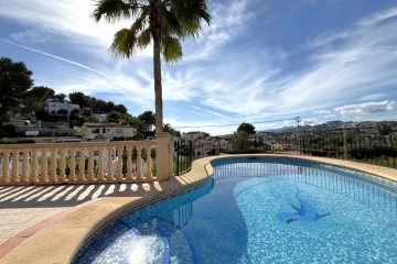 Upon entering the property, on the main floor to the right you’ll find a spacious open-plan kitchen that connects with the dining area on the left. Next to the dining room, there is a small room that can be used as an office or an additional bedroom. Continuing down the hallway, there are two bedrooms, one on each side, each with its own bathroom. At the end of the hallway is the large, bright living room with direct access to the terrace and pool. From the living room, stairs lead up to the upper floor, where you find a generous bedroom with an en-suite bathroom. Back on the main level, the terrace area offers a pleasant covered naya with an outdoor kitchen area, a kidney-shaped pool, and open views. The plot is spacious and features a lovely garden with fruit trees. The house is equipped with central heating, air conditioning, and a large parking area. Its convenient location allows you to walk to supermarkets and restaurants, offering both comfort and tranquility in an ideal setting.