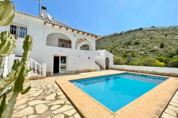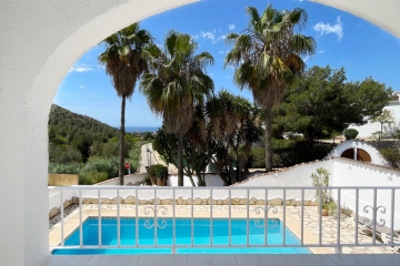 This charming Mediterranean-style villa is located in a quiet and green residential area of Benitachell, a short distance from the sea and amenities. The property is set on a spacious plot of 976 m² and offers 275 m² of living space, spread over two floors. The typical Mediterranean architecture with round arches and attractive Mediterranean garden immediately creates a warm and authentic feeling. The construction is solid and well maintained, but offers plenty of opportunities for modernisation in terms of aesthetics. An excellent opportunity to transform this villa completely to your own taste and style into your dream home on the Costa Blanca North.