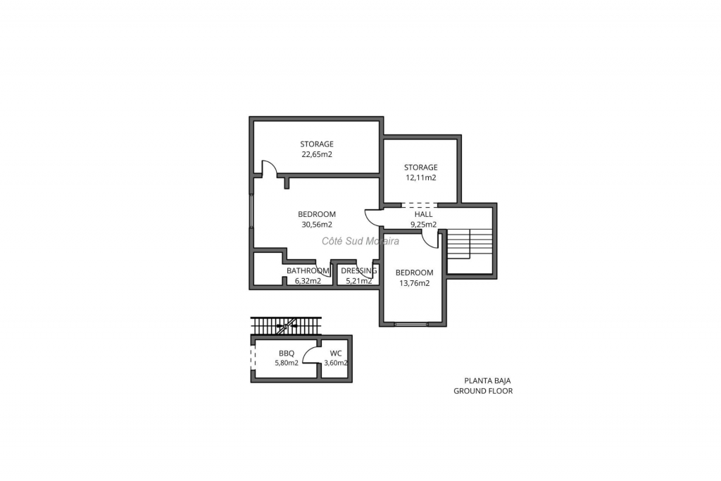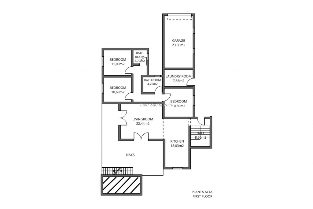 The upper floor consists of a spacious and bright living room with direct access to the spacious naya (covered terrace), from where you can enjoy beautiful views of the green valley and the sea. Adjacent to this is the kitchen. This floor also has three comfortable double bedrooms and two separate bathrooms. A practical laundry room with extra storage space is accessible from the outside.The ground floor is accessible via both an internal staircase and an external staircase. Here you will find two more spacious double bedrooms, a generous family bathroom, a separate guest toilet and two large storage rooms, ideal for storage or possibly to be converted into extra living space. Outside is the 8 x 4 metre private swimming pool, surrounded by a spacious terrace where you can enjoy the sun to the fullest. Right next to it, you will find a covered outdoor kitchen and an additional guest toilet. The garden is landscaped with low-maintenance Mediterranean plants, including some beautiful palm trees and Mediterranean plants, which provide extra atmosphere and privacy. Spread across the plot are several terraces and seating areas, where you can enjoy the sun or shade at any time of the day. There is ample parking on site, including a spacious garage.