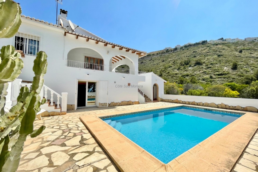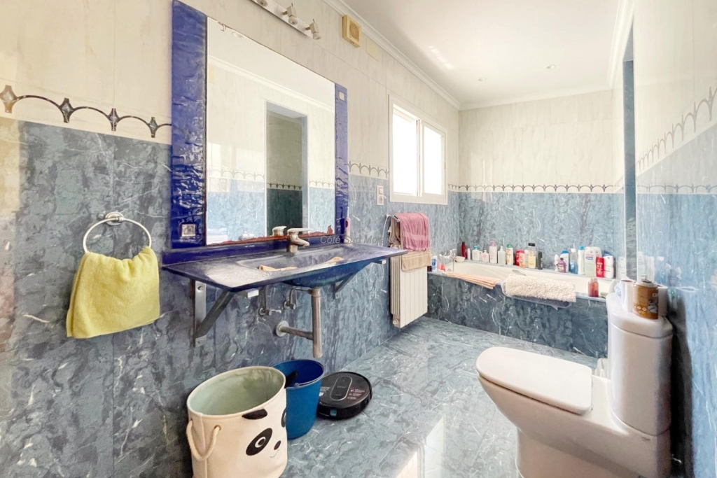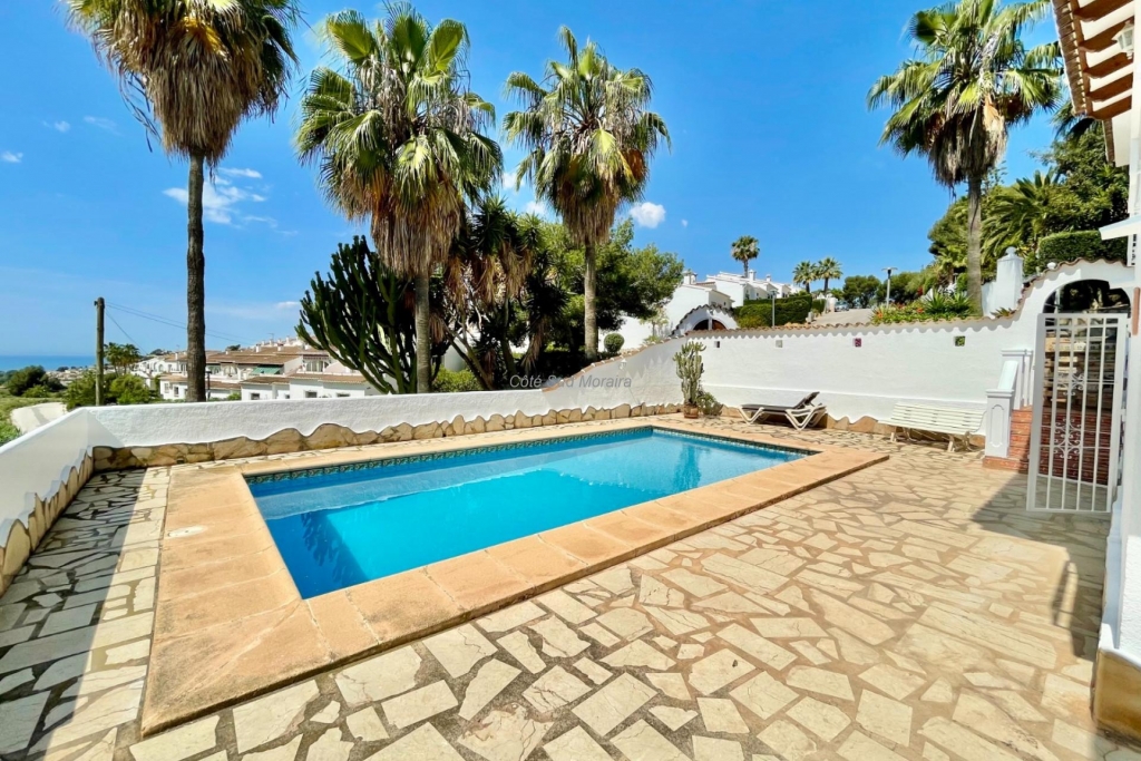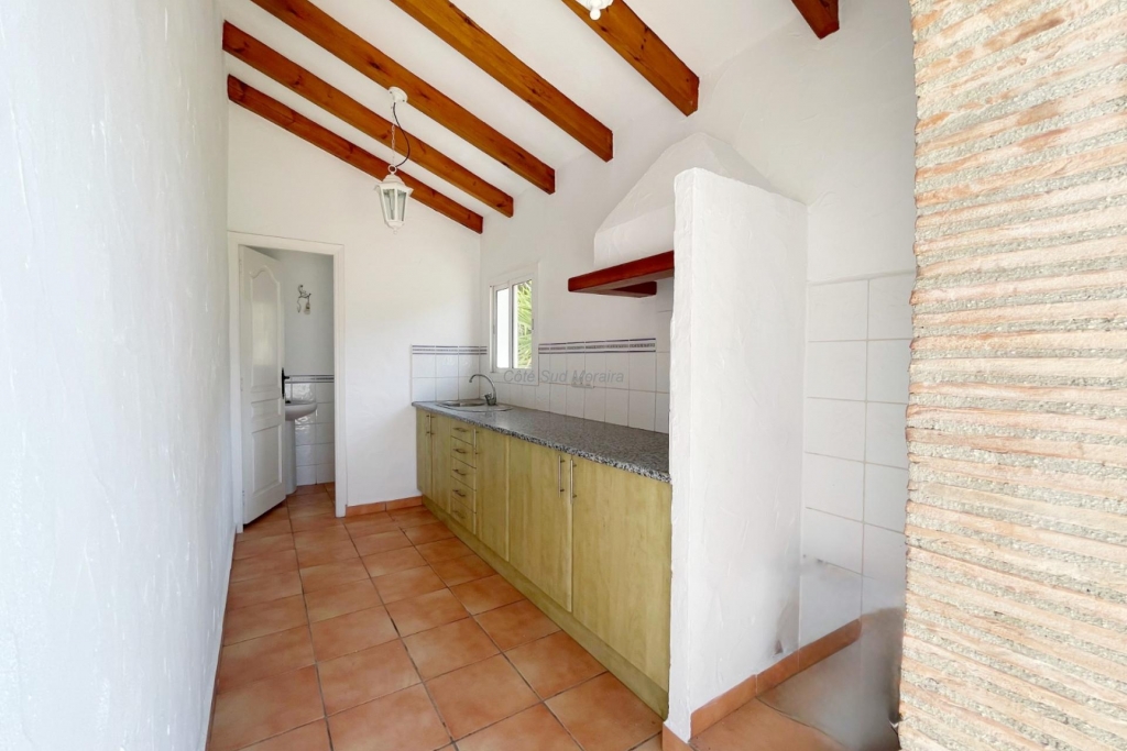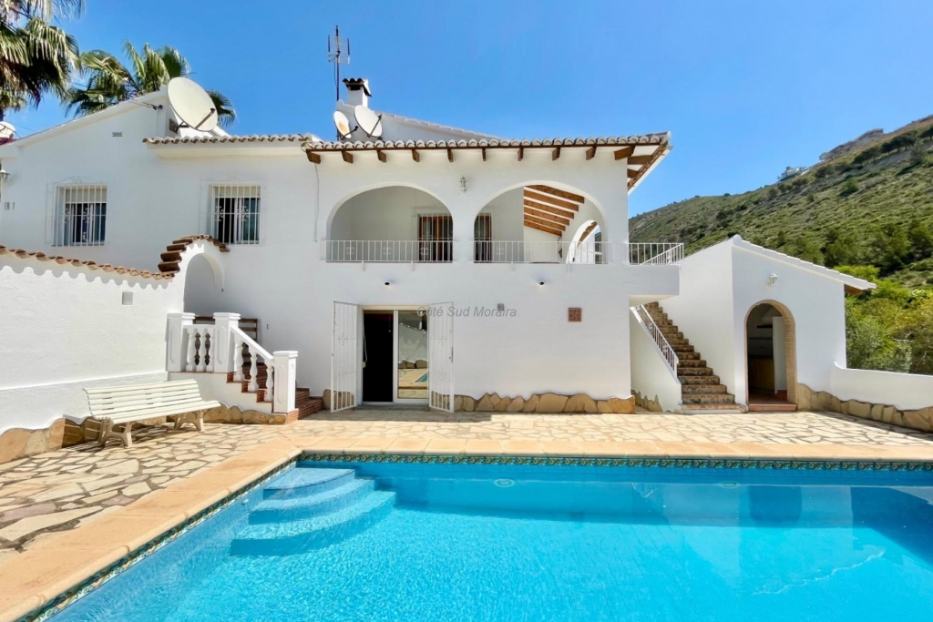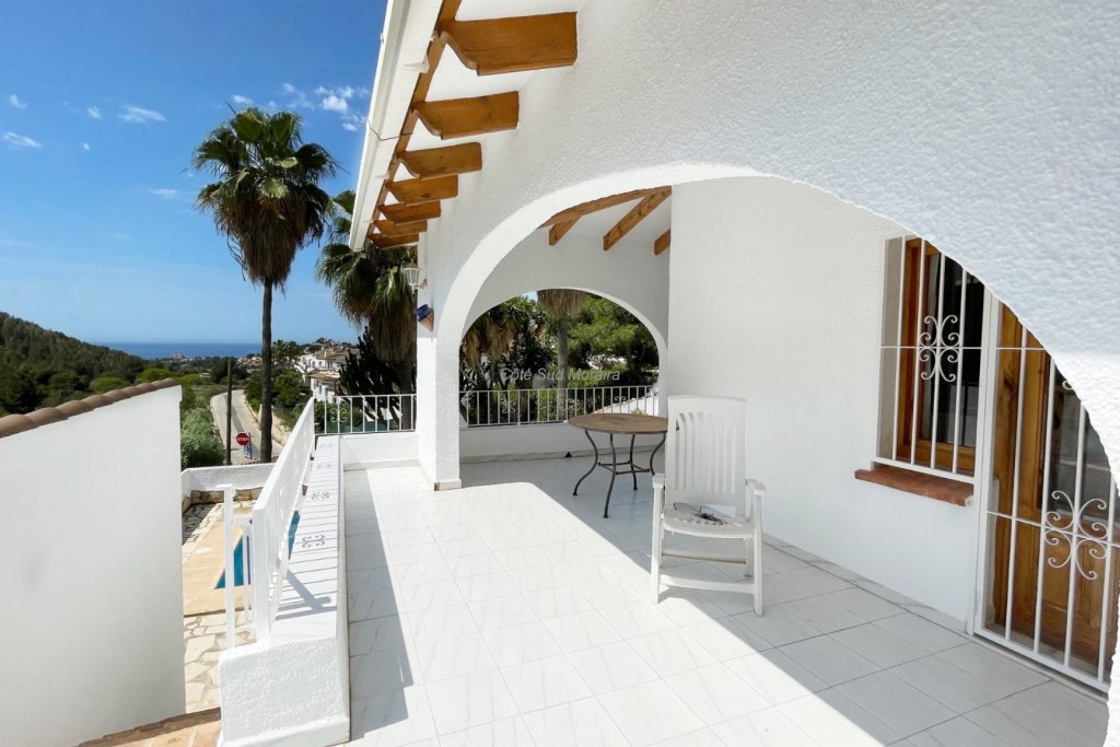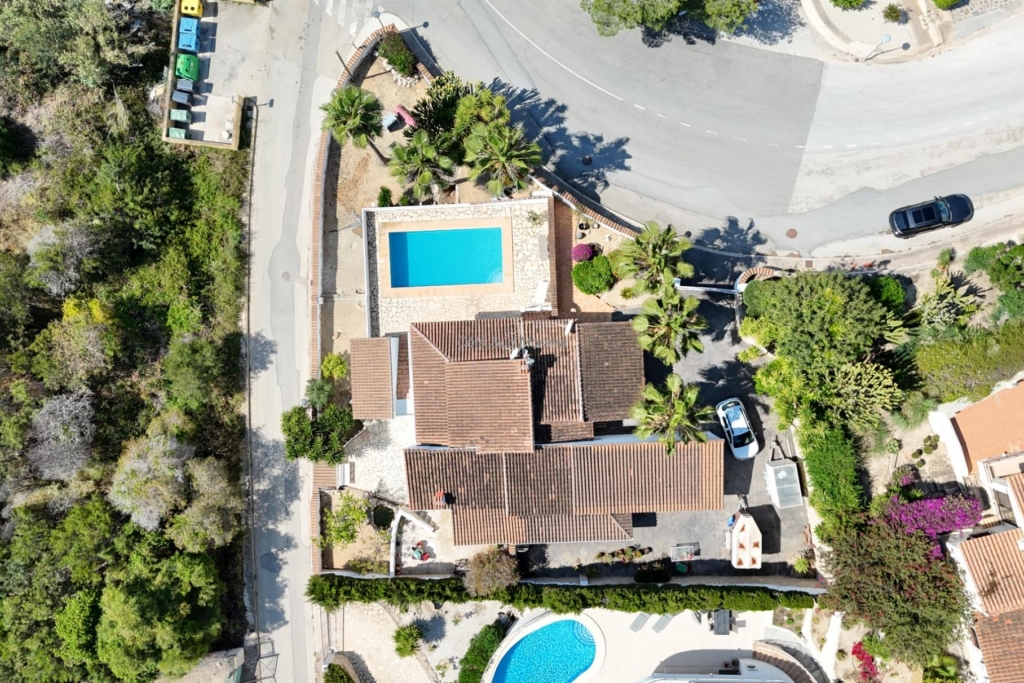 This charming Mediterranean-style villa is located in a quiet and green residential area of Benitachell, a short distance from the sea and amenities. The property is set on a spacious plot of 976 m² and offers 275 m² of living space, spread over two floors. The typical Mediterranean architecture with round arches and attractive Mediterranean garden immediately creates a warm and authentic feeling. The construction is solid and well maintained, but offers plenty of opportunities for modernisation in terms of aesthetics. An excellent opportunity to transform this villa completely to your own taste and style into your dream home on the Costa Blanca North.